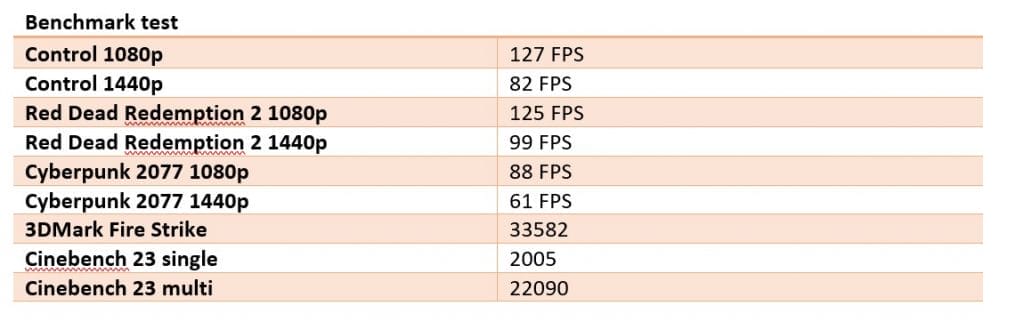 De videokaart is ook het beste van nu. Dit model is uitgerust met een Nvidia GeForce RTX 3080 Ti. Er is ook een mogelijkheid om de Scar 17 SE te kopen met een 3070 Ti aan boord. De maximale TDP van dit model is 175W, wat een jaar geleden nog ongekend was. Afgelopen jaar kon de videokaart van de SCAR 17 met Turbo Boost ingeschakeld maximaal draaien op 130W. Dit jaar is dat maximaal 175W. Meer rekenkracht zorgt voor betere performance tijdens het gamen. De tabel hieronder laat zien dat deze laptop alle moderne games zonder moeite kan draaien.