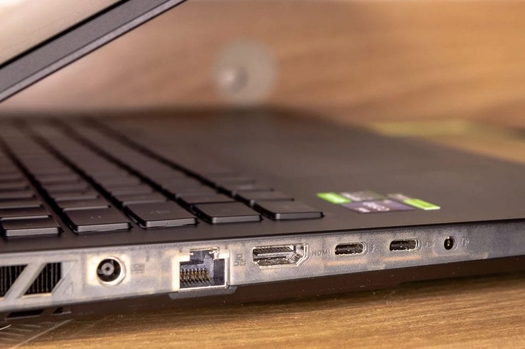 Wel krijg je twee USB-C 3.2-poortjes. Deze zijn aan de linkerkant van de behuizing te vinden, één daarvan is Thunderbolt 4. Daarnaast is er aan de linkerzijde een 2.5Gbit Ethernetaansluiting, een 3,5 headphone jack, een HDMI 2.1 en een voedingspootje voor de oplader te vinden. Een tegenvaller voor content creators is dat er geen ingebouwde SD-kaartlezer is. Wel is er een webcam, iets wat een groot gemis was bij ROG laptops tijdens de pandemie. De webcam doet wat het moet doen, maar is niet heel denderend. Het is een vrij simpele 720p webcam die gewoon prima is voor af en toe een videogesprek.