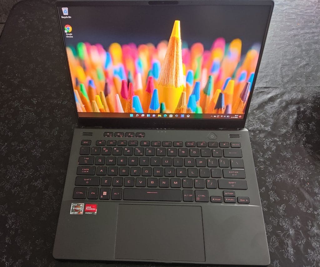 Het scherm is van het type IPS en de kleurweergave is goed met 99.9% SRGB en 85.5% Adobe RGB dekking. Daardoor is dit scherm geschikt voor multimedia, content creators en natuurlijk gamers. Verder is de responstijd van het scherm verbeterd. De vorige versie van de G14 had een responstijd van 20ms wat niet echt optimaal is voor het spelen van competitieve games. Het 2022 model heeft een responstijd van 3ms, wat een flinke verbetering is.