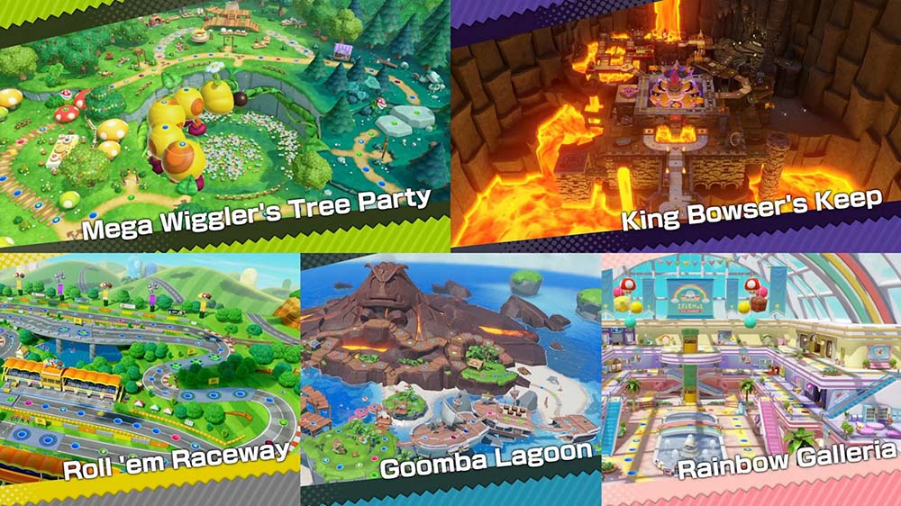 Het blijft overigens niet alleen bij de uitstraling, want de borden voelen anders aan wat betreft speelervaring. Goomba Lagoon bevat een actieve vulkaan waar we niet gaan spoilen wat je meemaakt als deze uitbarst. Mega Wiggler’s Tree Party bevat een enorme rups waar je op kan rijden en er zijn veel gevaarlijke piranha-planten waar je rekening mee moet houden. Het bord Roll ‘em Raceway, is behoorlijk geïnspireerd door Mario Kart. Alle personages zitten daadwerkelijk in een wagen en scheuren door het bord. Er is een DiceStop-weg die je kan nemen om je munten te spenderen aan handige items. Hopelijk blijft het niet alleen bij deze borden en krijgen we nieuwe in de vorm van DLC. Op dit moment heeft Nintendo niets bekendgemaakt over post-launch support.