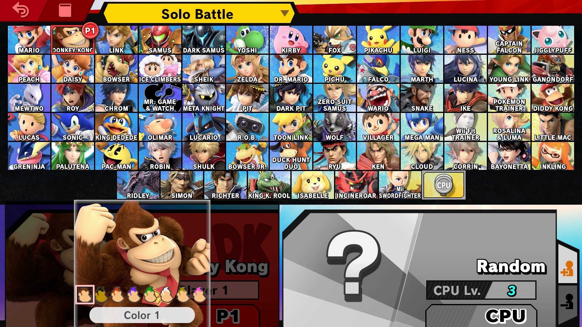 Hoewel de game 74 speelbare personages heeft, kan je ze niet per direct gebruiken. Spelers moeten enkele uren spelen om alle personages te ontgrendelen. Super Smash Bros. Ultimate start heel nostalgisch met de acht vechters van de allereerste Smash op de Nintendo 64 van 1999. Om de tien minuten wordt de speler uitgedaagd om een 1 tegen 1-gevecht aan te gaan tegen een nieuwe vechter. Slaag je erin om deze te verslaan, dan ontgrendel je deze vechter. Het select-scherm met speelbare personages begint klein maar wordt op een gegeven waanzinnig groot.