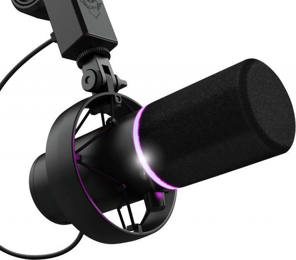 Trust zet de laatste jaren steeds meer in op design en dat zien we ook terug in de Trust GXT 255+ Onyx. De microfoon en de microfoonarm zijn voorledig in het zwart. Het geheel oogt strak, minimalistisch en premium. Het design oogt minimalistisch totdat je de verlichting aanzet. De Trust GXT 255+ Onyx heeft namelijk een LED-ring die licht geeft. Wanneer de verlichting aangaat, is het wel echt een product voor de doelgroep gamers.