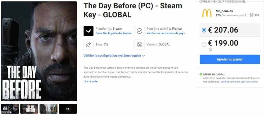 The Day Before is inmiddels niet meer te koop. Valve heeft de game uit Steam gehaald, maar scalpers verkopen inmiddels volledige game codes op tweedehands websites die nog op Steam in te voeren zijn, maar wel voor absurde bedragen. Iedereen die The Day Before via Steam Early Access heeft aangeschaft, kan een refund aanvragen.