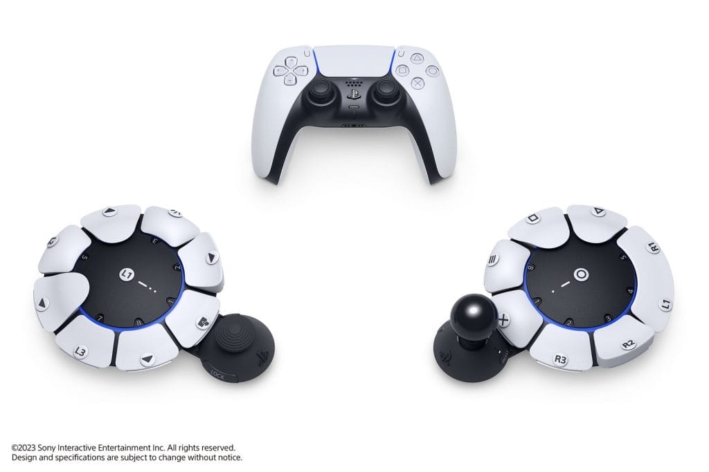 De controller is cirkelvormig met alle fysieke knoppen die we kennen uit de DualSense-controller. Gebruikers kunnen de knoppen aanpassen. De controller hoeft niet vasthouden te worden maar kan ook plat op een tafel gebruikt worden. Sony zegt de controller in samenwerking met organisaties voor gamers met een beperking ontwikkeld te hebben. De controller bevat vier 3,5mm-poorten op de behuizing waarmee functionaliteit is uit te breiden.