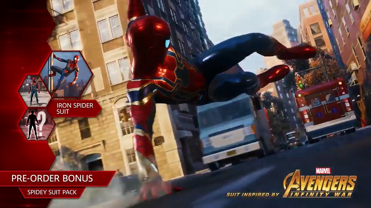 Nu is een derde outfit voor Spider-man namelijk de Iron-suit van Avengers: Infinity War gelekt op Twitter. Insomniac Games heeft deze outfit zelf nog niet aangekondigd maar in de screenshots hieronder kunnen we Spider-man zien in zijn Iron-outfit. Mogelijk bewaart Insomniac deze aankondig voor de Avengers-film die vanaf 25 april te zien zal zijn. De drie outfits van de screenshots zijn direct beschikbaar voor de mensen die de game preorderen. Spelers hoeven niet te vrezen dat ze enkele outfits kunnen mislopen, want Insomniac Games zegt dat alle outfits in-game vrij te spelen zullen zijn inclusief alle pre-order-outfits.