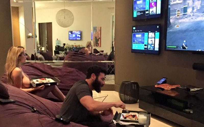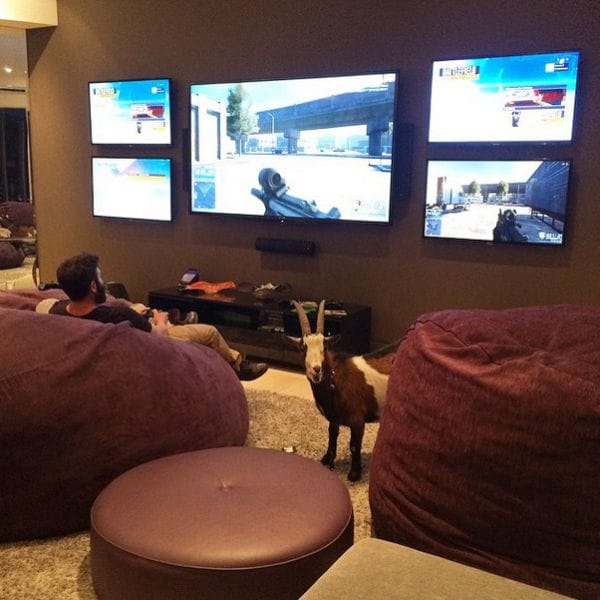 Natuurlijk gaat hij niet gamen in een kleine kamer of op een klein scherm. Hij heeft niet al te verrassend een behoorlijk indrukwekkende ‘game room’. Zo heeft hij maar liefst vijf gigantische schermen hangen. Ideaal voor Call of Duty met de vrienden te spelen zodat hij niet via splitscreen hoeft te spelen. Naar verluidt heeft hij dan ook een aparte console voor elk scherm Achter zijn rug heeft hij zelfs ook nog een zesde tv hangen.