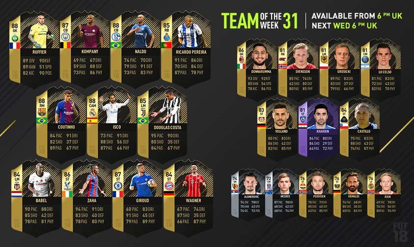Het Team van de Week 31 is uitgekomen en ook deze week zijn er weer prachtige pareltjes in het team te vinden. Eén Nederlander heeft een plekje weten te veroveren en heeft daar een fantastische kaart voor gekregen. De beste kaarten in dit team zijn Ruffier (88), Kompany (87), Isco (88) en Coutinho (88). Ook is er voor een speler uit de Eredivisie gekozen, wil jij weten wie dat is? Scroll dan snel naar beneden!
