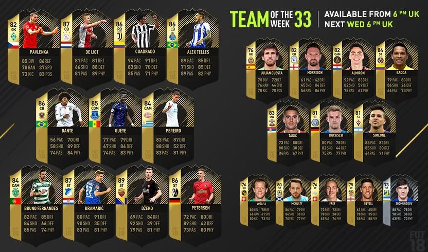 Het is weer een fantastische week voor de FIFA fanaten. Een prachtig team van de week, waarbij er mooie kaarten te vinden zijn. In het team zitten twee spelers uit de Eredivisie, waarbij één Ajacied al zijn derde in-form kaart mocht ontvangen. Bekijk hieronder het volledige team van de week 33!