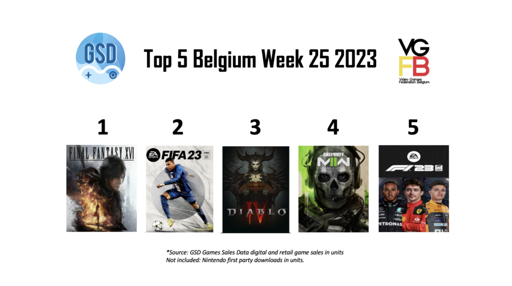 In week 25 van 2023 staan enkele nieuwkomers in de top 5. Op de eerste plek staat de nieuwe mainline Final Fantasy-game die exclusief verkrijgbaar is voor de PlayStation 5 genaamd Final Fantasy XVI.