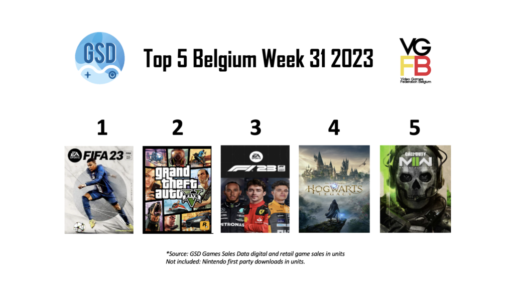 In week 31 van 2023 staan er opmerkelijk genoeg geen Nintendo Switch-games in de top 5. Op de eerste plek staat de voetbalgame FIFA 23, terwijl de opvolger genaamd EA Sports FC 24 al over enkele weken in de winkels komt te liggen. De stijging in verkoopcijfers komt mogelijk door de flinke prijsdalingen en de start van een nieuw seizoen voetbal in alle grote competities.