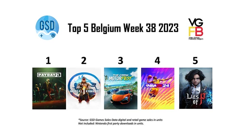 De Video Games Federation Belgium (VGFB) geeft ons iedere week een lijst met de top 5 meest verkopende games in België.