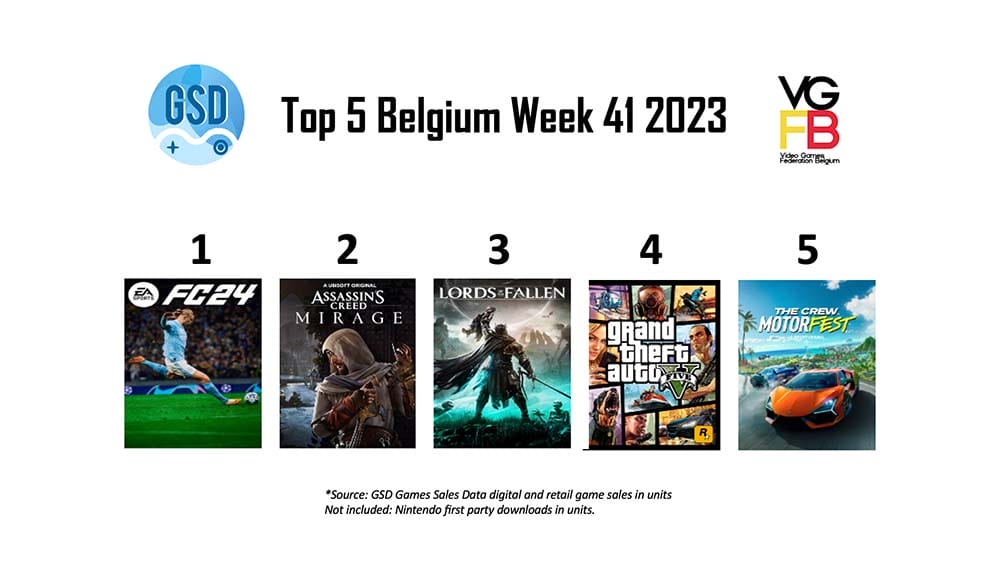De Video Games Federation Belgium (VGFB) geeft ons iedere week een lijst met de top 5 meest verkopende games in België.