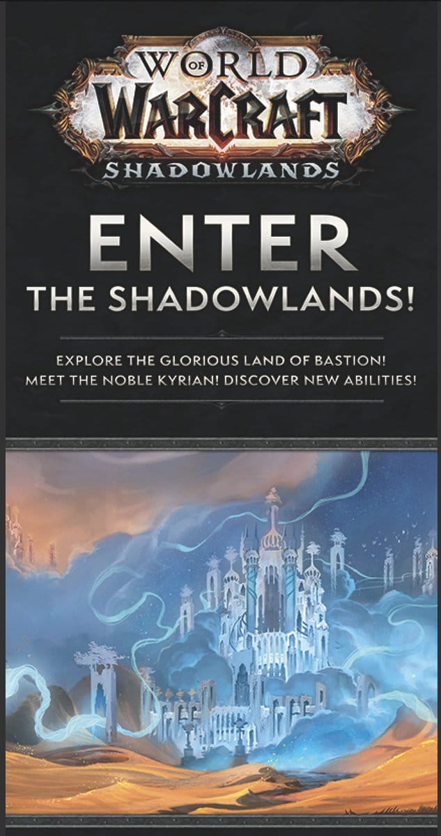 In de onderstaande afbeeldingen zien we dat de uitbreiding mogelijk WoW: Shadowlands gaat heten. We zien ook dat één van de populairste karakters van de game terug gaat keren, namelijk the Lich King.