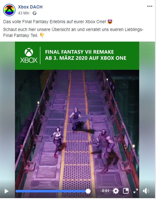 Xbox Duitsland kwam vandaag met het nieuws dat de remake van Final Fantasy VII, ook gewoon volgend jaar in maart zal verschijnen voor de Xbox One. Een uur na de aankondiging werd de post van Facebook verwijderd. Het is nu de vraag of dit een fout van Xbox Duitsland was of dat Final Fantasy VII echt gaat verschijnen voor de Xbox One.