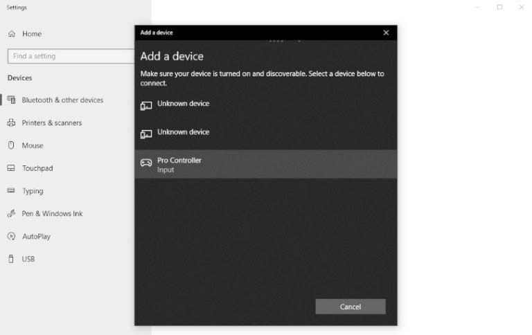 - Klik op een bluetooth-apparaat toevoegen en selecteer de Nintendo Switch Pro-controller.