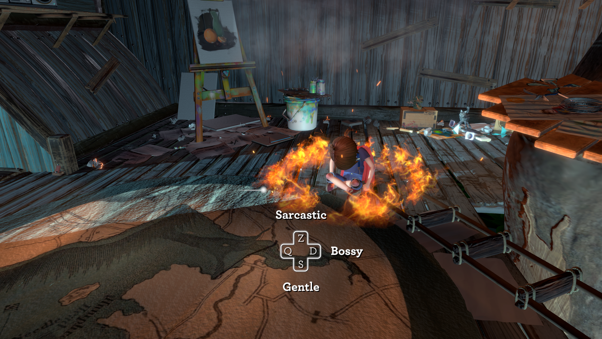 Het spel schittert vooral wanneer Finn en Scarlett in gesprek gaan. Eén van de grootste reden hiervoor is omdat de stemacteurs verdomd goed zijn. Ook de dialogen zijn steeds interessant. Een 10-jarig kind dat iets duister in zich mee draagt en ontwijkend over zware onderwerpen praat. Dat is niet makkelijk om geloofwaardig over te brengen maar ze slagen er toch in met Blackwood Crossing. Goede animaties helpen hier weer bij. De makers hebben helaas besloten om tijdens deze conversaties ‘random button presses’ toe te voegen. Je kent ze. Tap A of X om iets banaal te doen terwijl de karakters iets aan het vertellen zijn tegen elkaar. Spijtig. Dit leidt alleen maar af en heeft eigenlijk geen toegevoegde waarde. Over meerwaarde gesproken. Je kan tijdens het spel via de pijltjes toetsen soms een reacties geven op bepaalde momenten. De keuzes zijn droevig, bazig en zachtaardig. Je hoort Scarlett wel iets zeggen maar er zijn geen consequenties aan verbonden.
